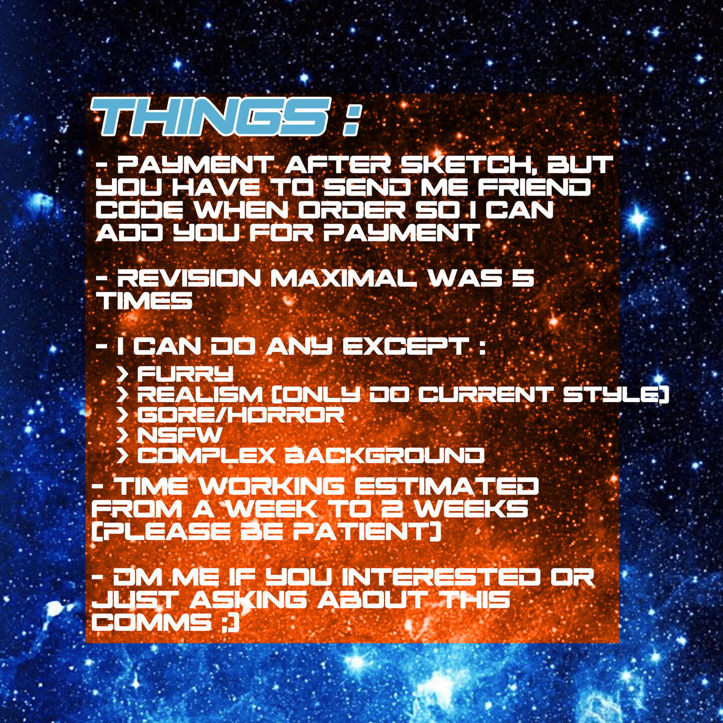 - BANK TRANSFERS (BCA)You can contact me via DM Instagram/Twitter/Facebook/Discord(if u from there) for order or just asking about my comms via email : [email protected]