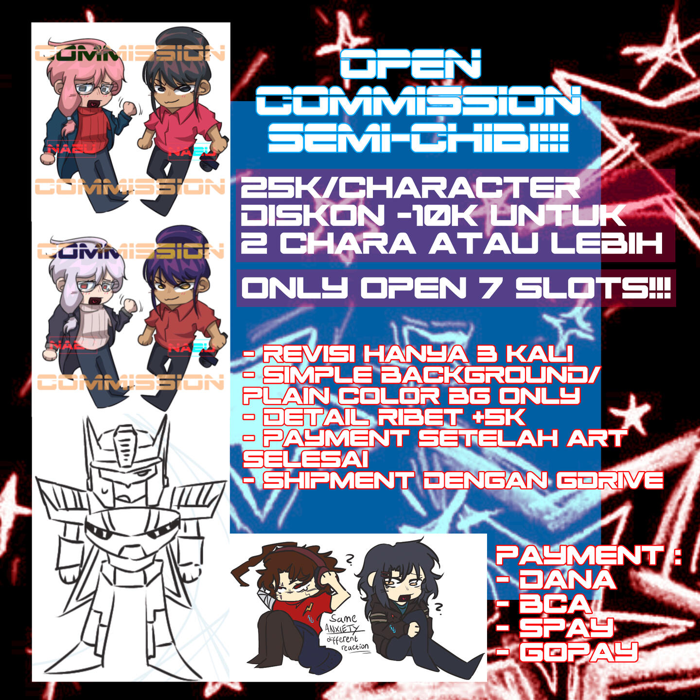 Full body humanoid fully rendered + semi detailed background, bonus : semi-chibi + close-up fully renderedSEMI-CHIBI COMM 25K/CHARA (LOCAL INDONESIAN ONLY)